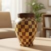 The Dama Patchwork Wood Urn, a beautiful handcrafted piece made from 100%...